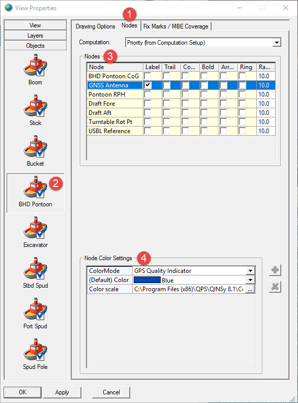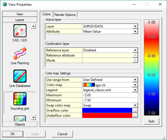 Only available when Color Mode is set to GPS Quality Indicator. Browse for an existing color scale. It displays the GPS quality (e.g. RTK fixed solution mode or DGPS solution mode). These Color Maps are currently available: