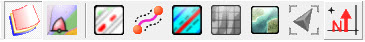 Use this button in combination with the Easting/Northing or Latitiude/Longitude coordinates in the To and From panels and with the mouse cursor. The button is activated by clicking in the Easting/Northing or Latitiude/Longitude box. The cursor changes into a range and bearing symbol to indicate that a selection in the navigation screen is expected.