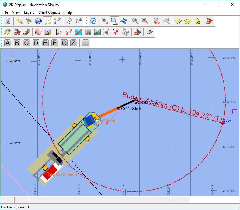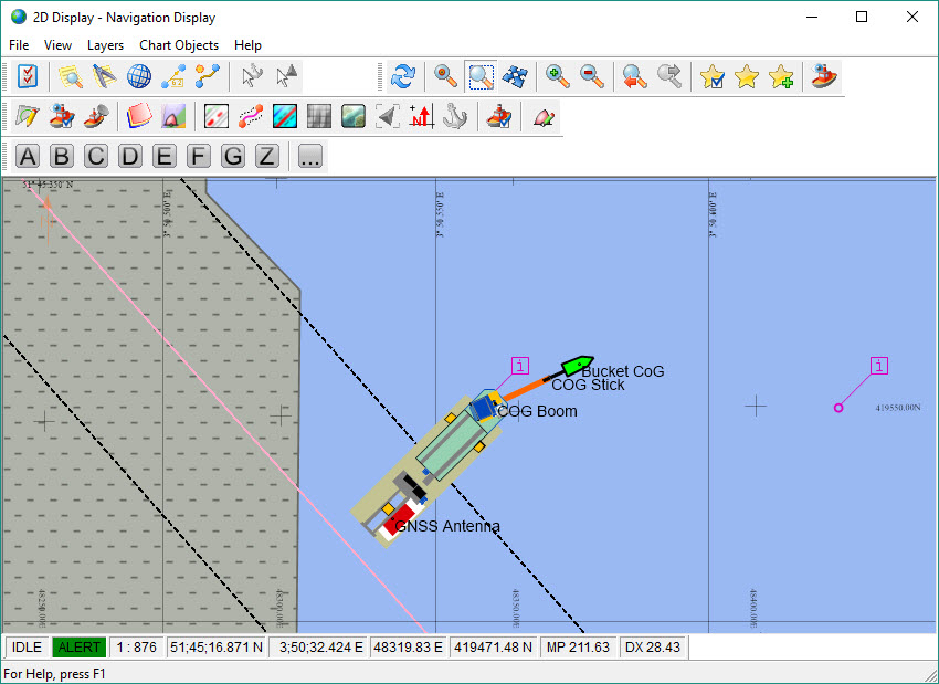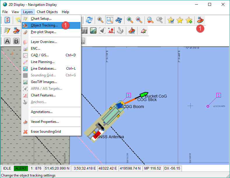 Used for navigation and positioning during dredging operations, this display makes use of a layer structure that can be accessed via: