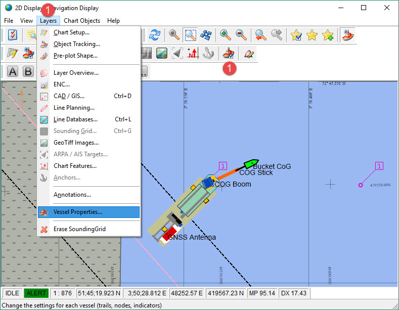 Go to “Layers” on the menu bar and select “Vessel Properties”, or click on the icon .