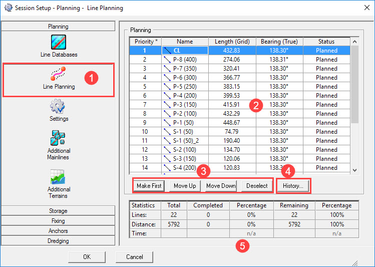 ![]() | Plan selected lines and see the statistics of the survey. |