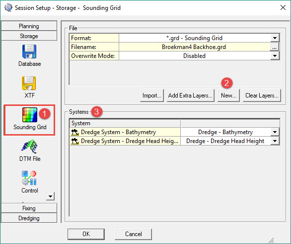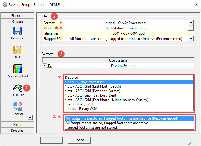 | Use System | Activate the Dredging system(s) to use in the generation of the DTM file. |