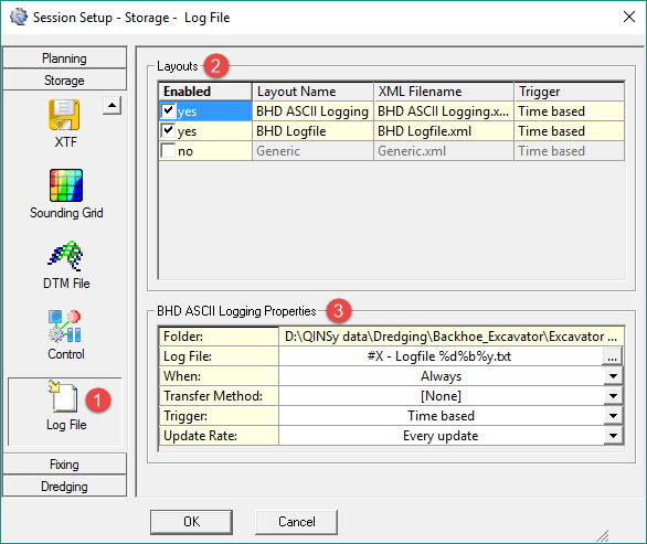 Backhoe dredging is more likely to be controlled by the Eventing System which can be configured to start, pause and stop recording.