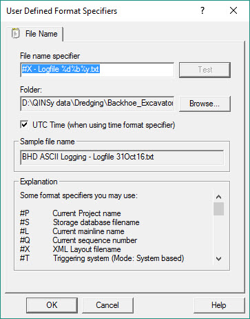 The XML files listed are those made using the Generic Layout Editor to define the data content and format, and resident in the \Project Folder\Settings\LogFile folder.