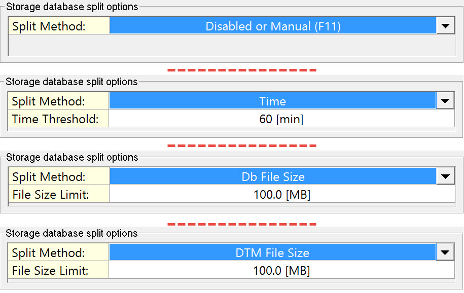 Note: For Manual splitting press F11 during the recording session. Updating continuously, DB and DTM file sizes are displayed in the Controller.