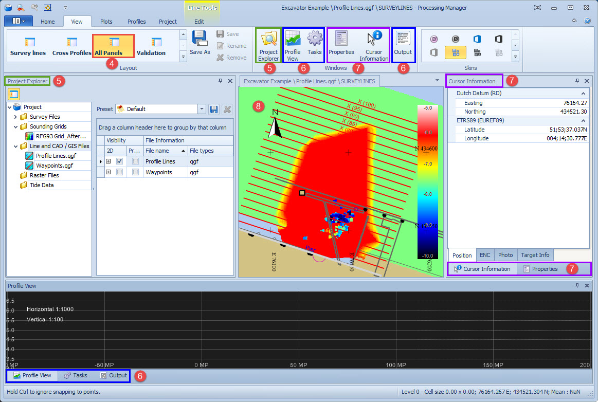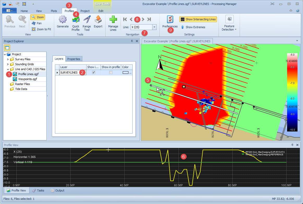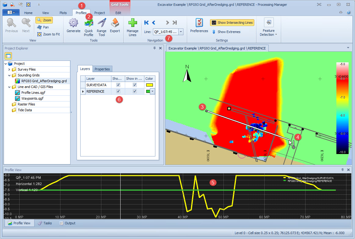 The Profile View is used to show a Quick Profile or to generate profiles from loaded Surveys, CAD and Sounding grid files.