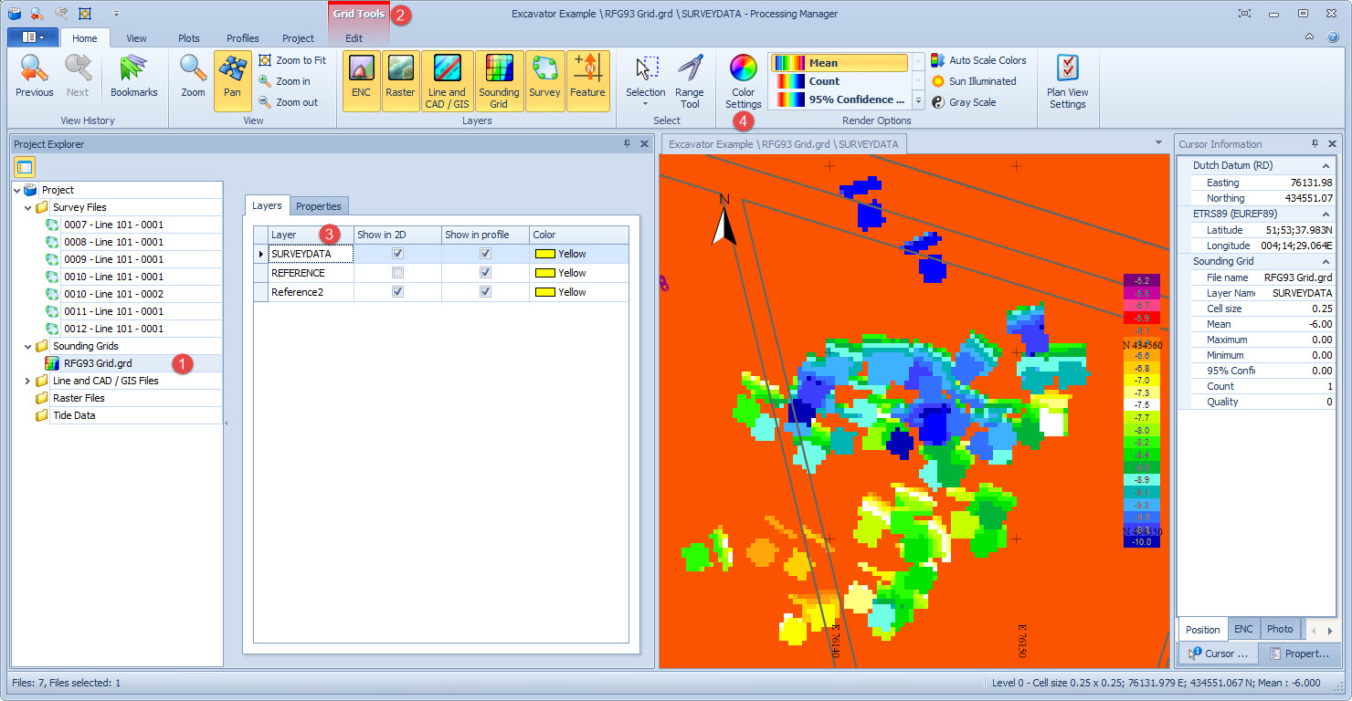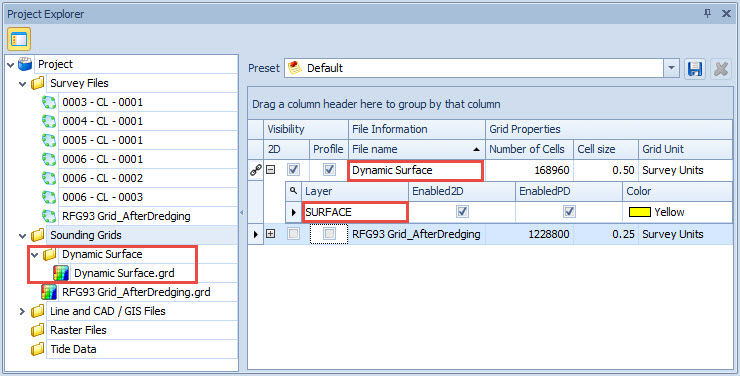 Open the Processing Manager (PM) and double click on the sounding grid used during dredging.