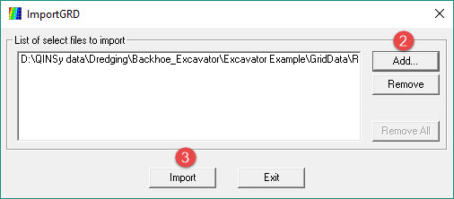 In the ImportGRD dialog click Add and browse for the applicable file.