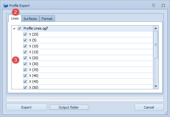 The list contains the lines for which profiles were generated. Re-select as necessary.