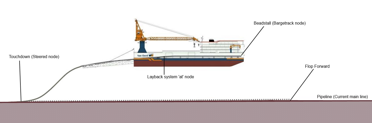 | Bottom Tension | The horizontal or vertical tension at the bottom (touchdown location) of the pipe or cable. Unit is the same as in the given weight in air / water of the pipe or cable. The horizontal component of the tension is always constant from touchdown point all the way to the release point, therefore this value is equal to the horizontal release tension | double | Reference:
