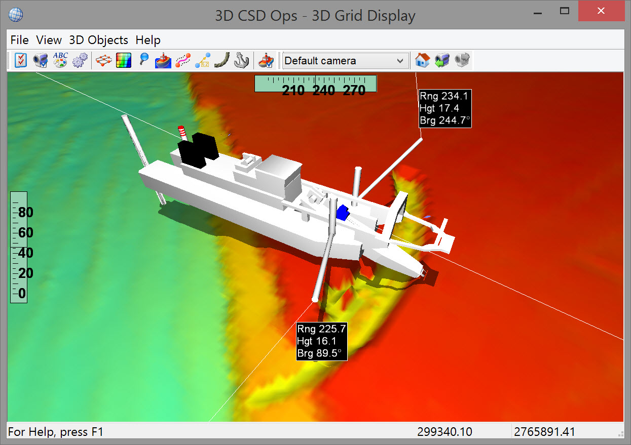 Select type “3D Grid Display” and enter a title name. Pressing OK opens an initial display that shows the active sounding grid layer, the current mainline and 3D vessel/object models: