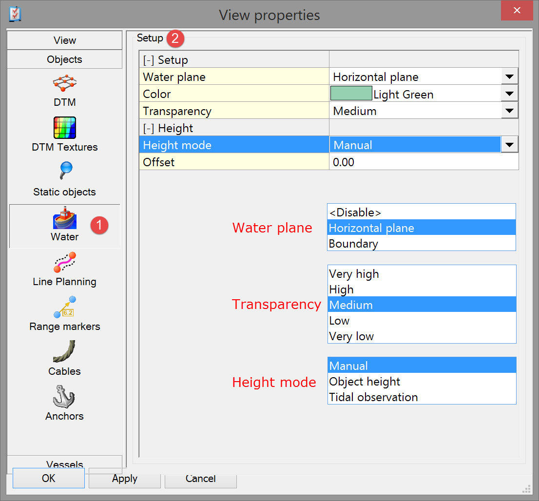 On occasion there may be a need to display objects within the 3D scene that do not move. For example, offshore structures like wind turbines or pipelines. If 3D models of static objects are available, they can be added to the scene.