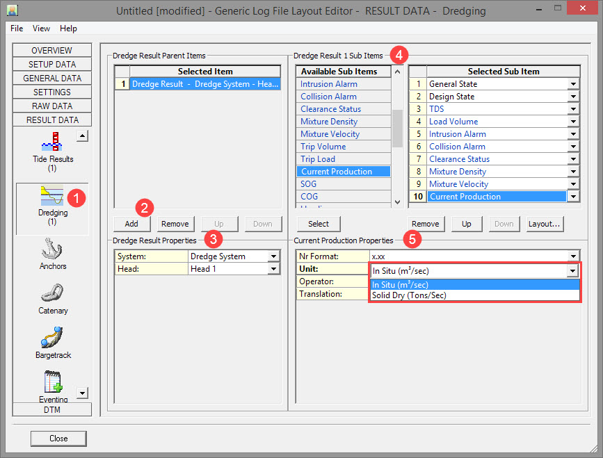 Click on Result Data and then Dredging.
