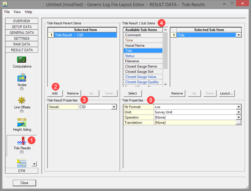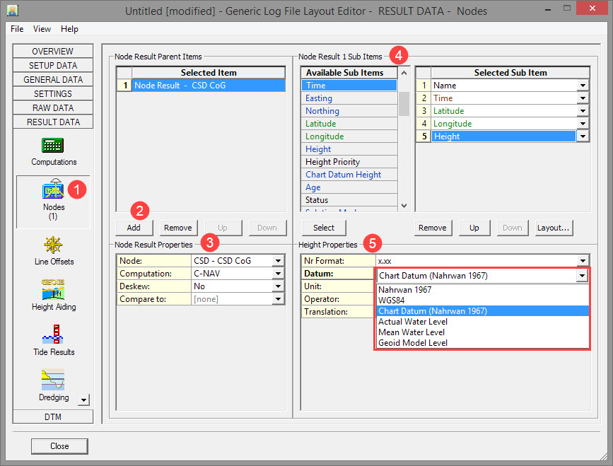 If the log file requires an identifier in order to decode the gyro observation, you could add 'Name' as another sub-item. Use the Translation function to modify the name if a specific identifier is needed. 'Time' is another option but in this case it is preferred to use the date and time from the computed position of the vessel CoG, which is added under the Result Data tab. The software will then output a gyro value for that time.