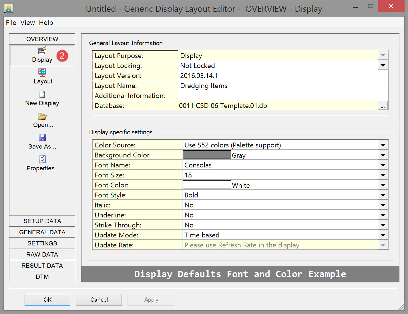 User configured settings of a generic display are stored in an *.xml file saved in the Settings\Display folder of the current project.