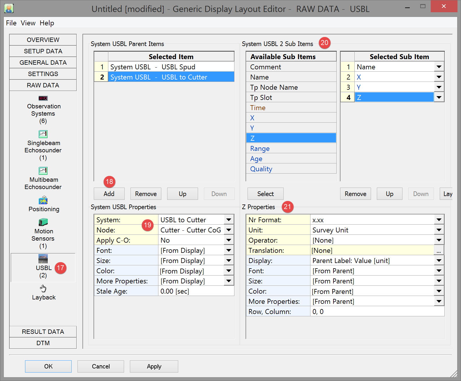 Because different types of multibeam echosounder systems are supported (Ro/Theta, X/Y/Z, Profilers) and multi-transducer systems, some items below may not be applicable for the concerned type.
