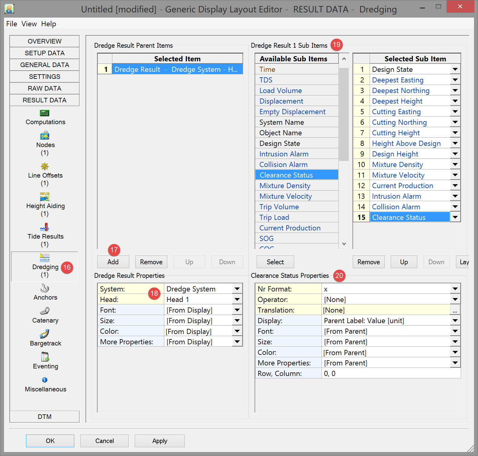 Refer to Dredging Results for further explanations of the various properties.