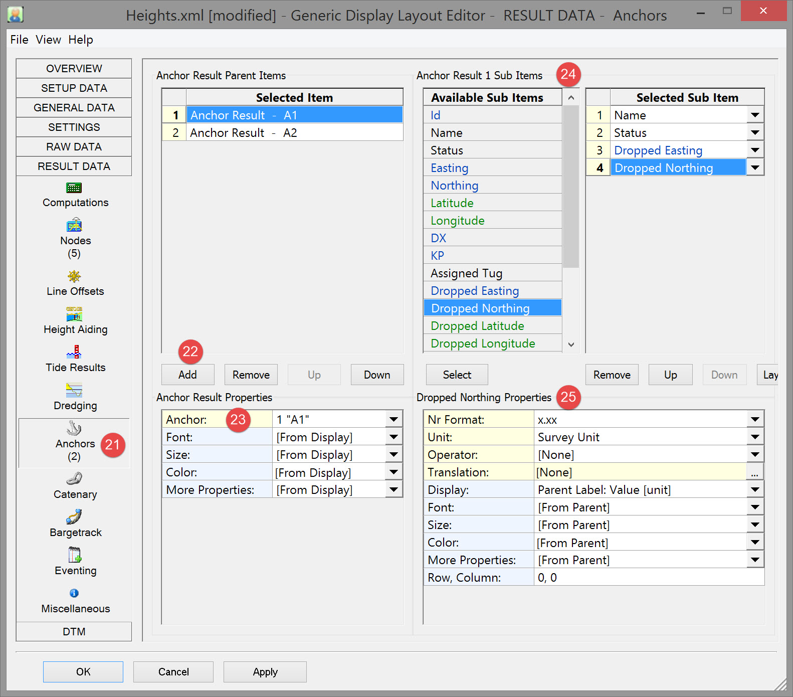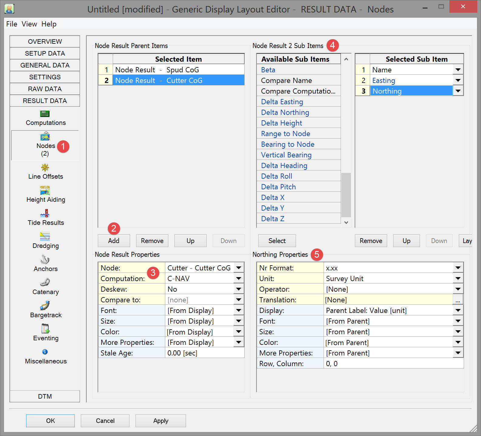 Center Easting/Northing/Height | Coordinates of the dredge head CoG. | |||||||||||||||||||||