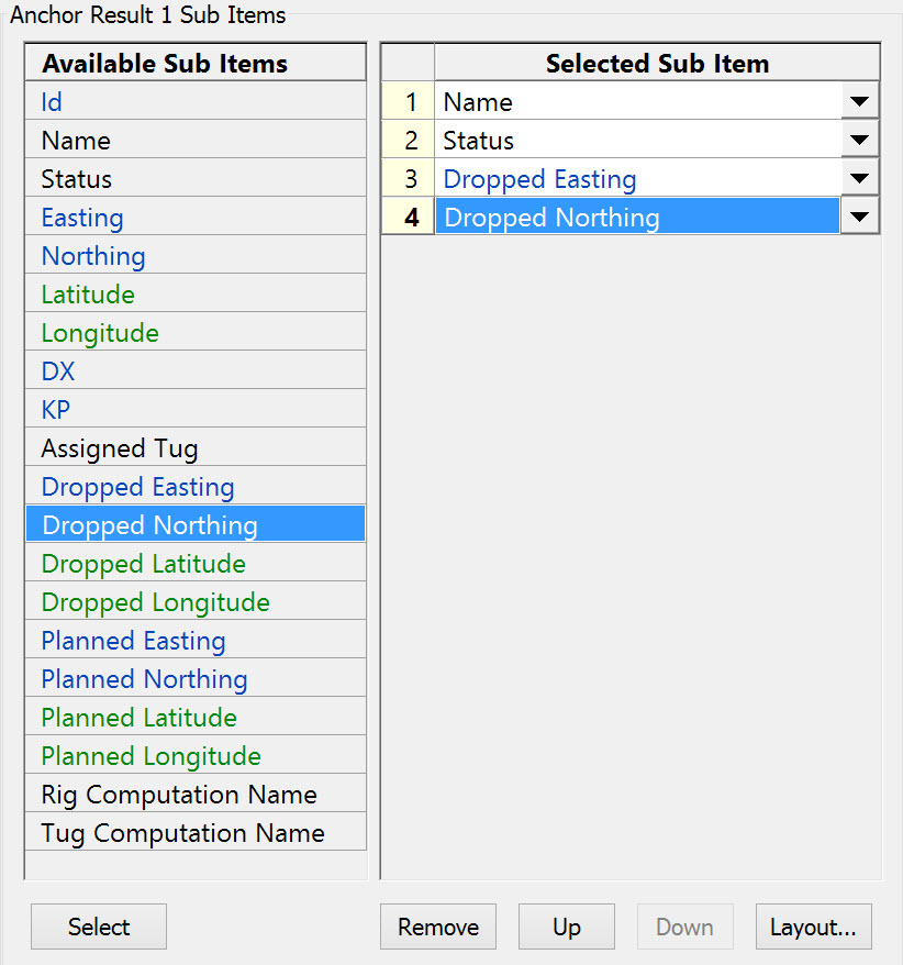 Easting | What these values are depends on the current state of the anchor: