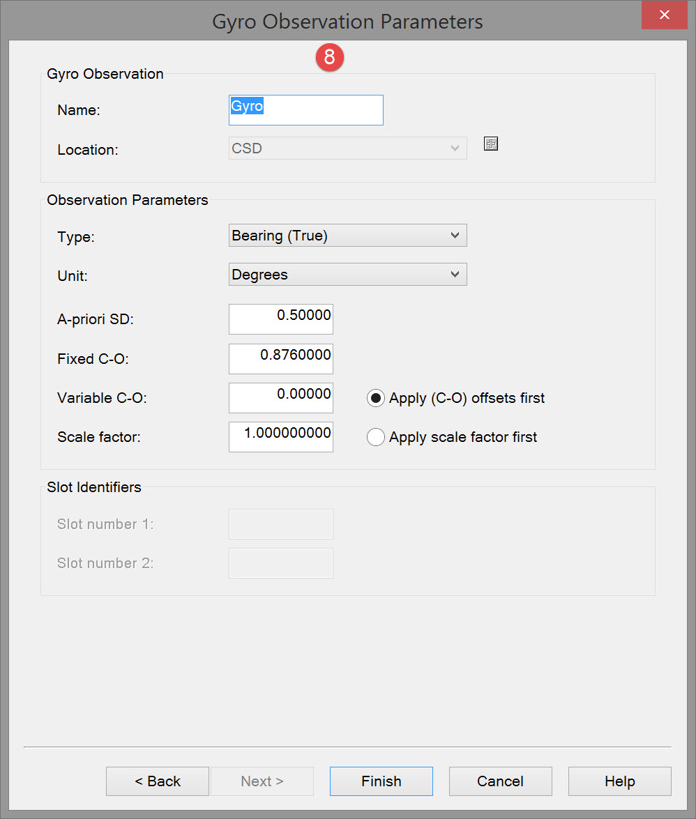 | A-priori SD | Enter the a-priori SD value of the gyro. Usually the default value is acceptable. |