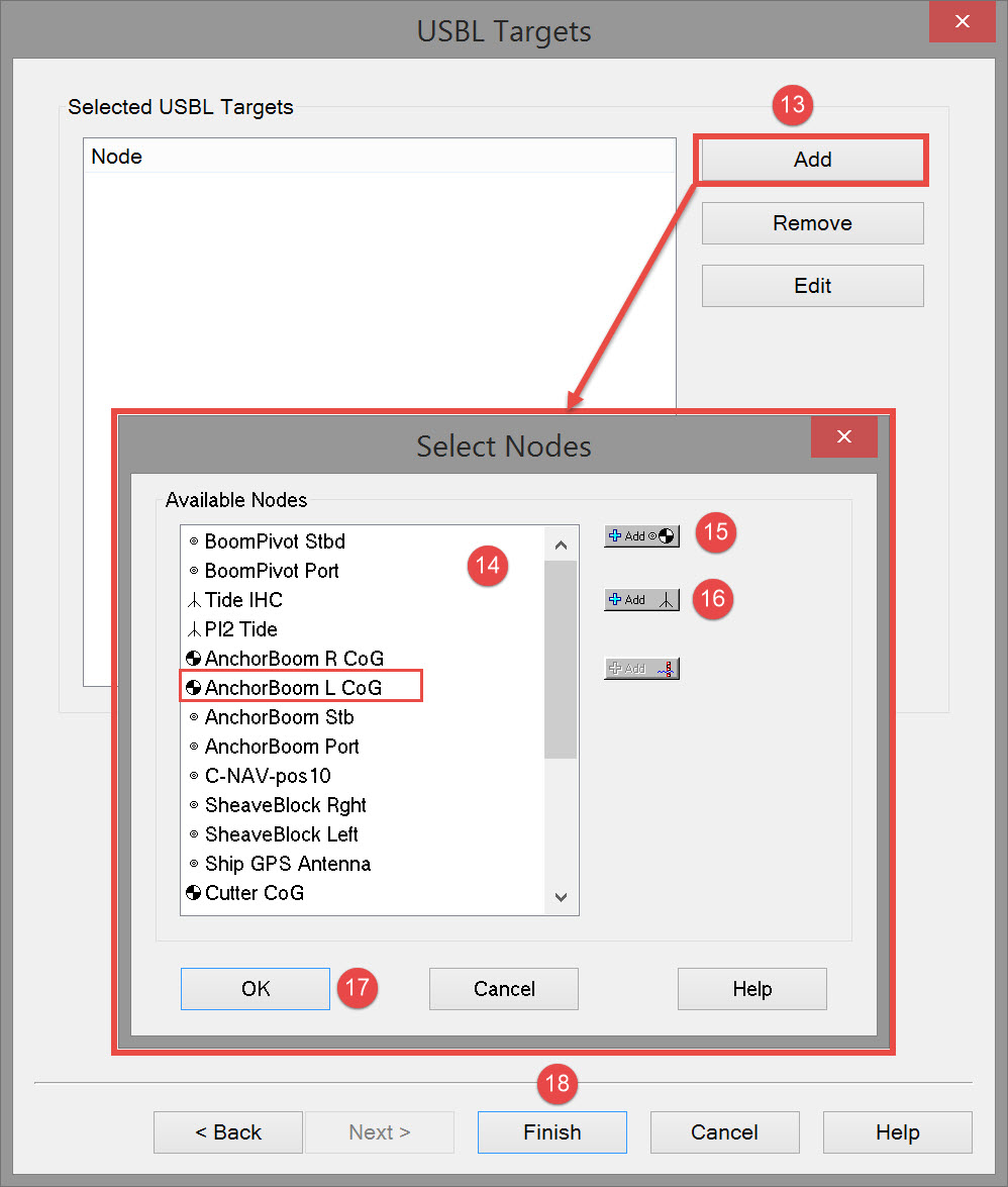 Use the Remove button to de-select previously added nodes.