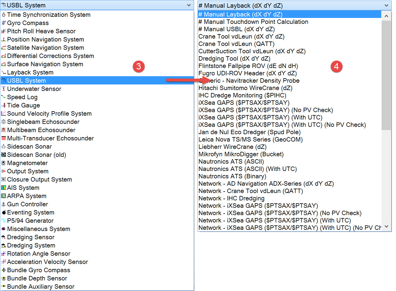 If there is no pseudo-USBL system reading dX/dY/dZ values from the dredger PC/PLC but there are one or more nodes for which you want to calculate position, the Manual Layback (dX/dY/dZ) system can be used.