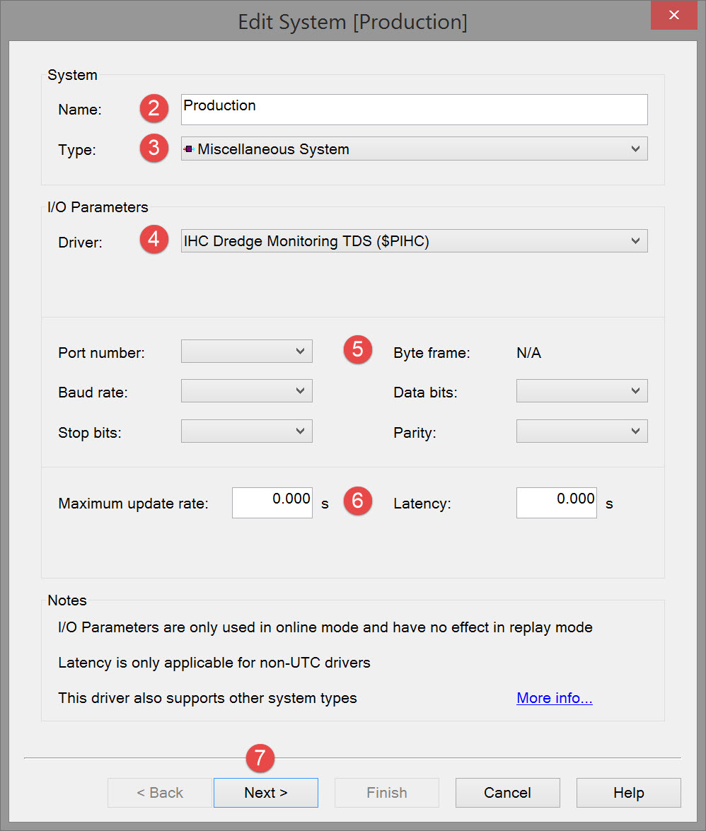 | Maximum update rate | Enter a value to determine how often data will be decoded by the interface driver. Some equipment is capable of outputting data at high output rates, but it may not be necessary to use each update. A sensor system may for example output values hundreds of times per second, where five times per second is sufficient. In this case, enter a value of 0.20s. Any data not decoded by the driver is lost and cannot be recovered later. |