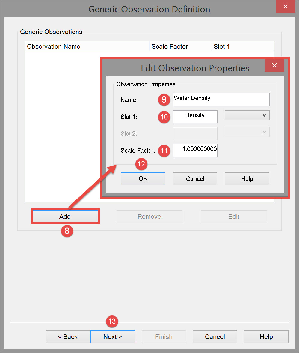 If additional observations must be defined, click on the Add button again and repeat the process. A final definition might look like this: