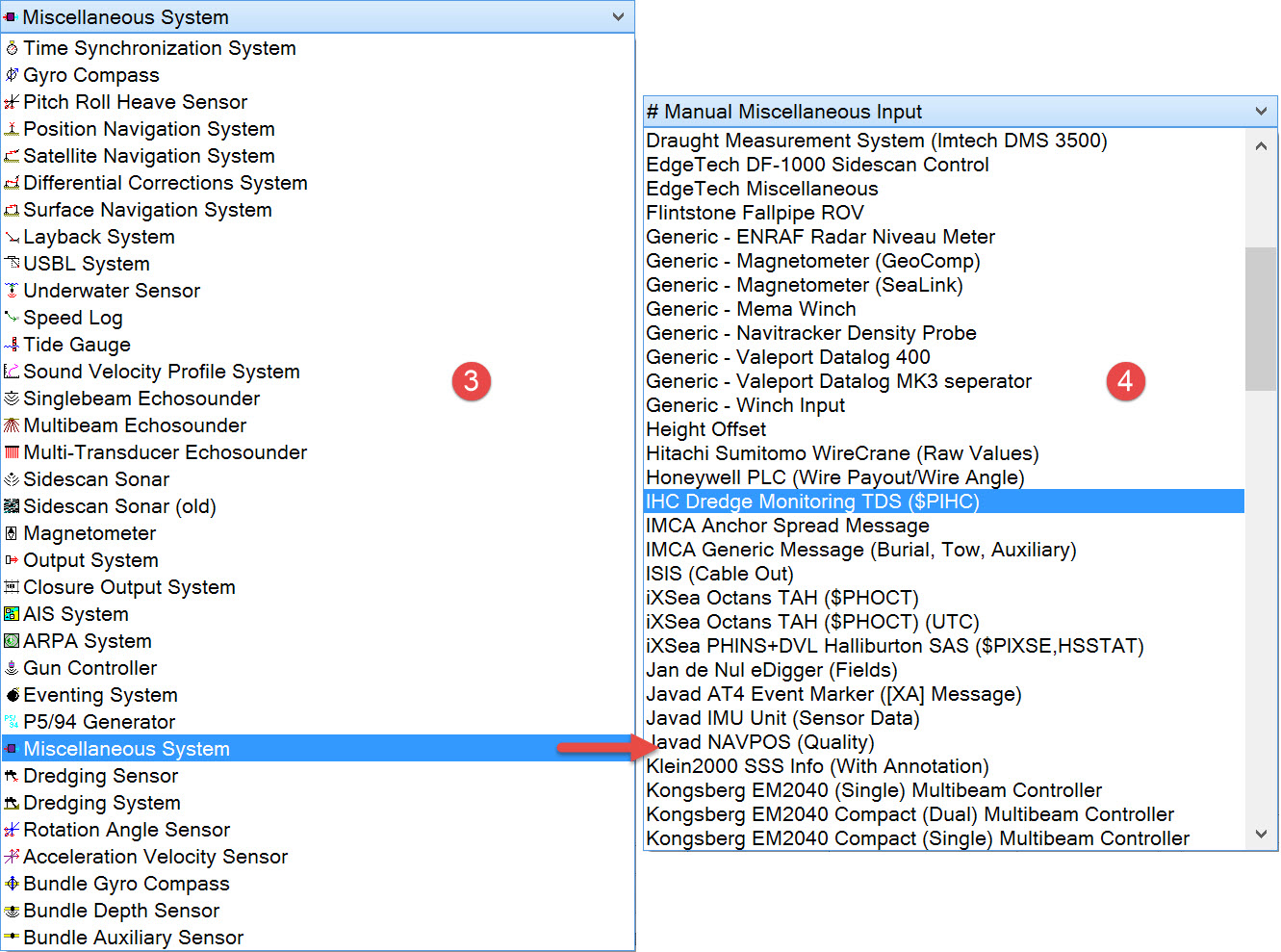 Various observations are definable under the Miscellaneous Systems category. For example: wind speed and direction, water temperature, TDS, water density, solid density.