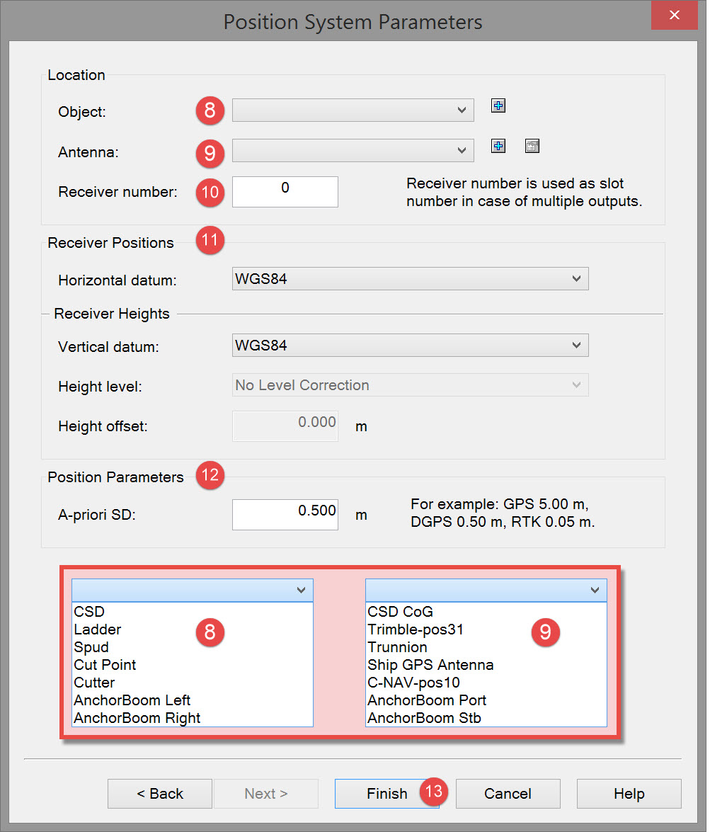 If you are proceeding from defining one object (the CSD vessel) directly to defining the position navigation system the list will only show the CSD reference point (CSD CoG).