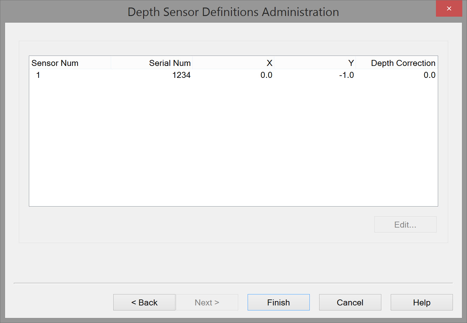 Depth Sensor Definitions Administration | The number of Depth Sensors listed corresponds to the number entered on an earlier page. |