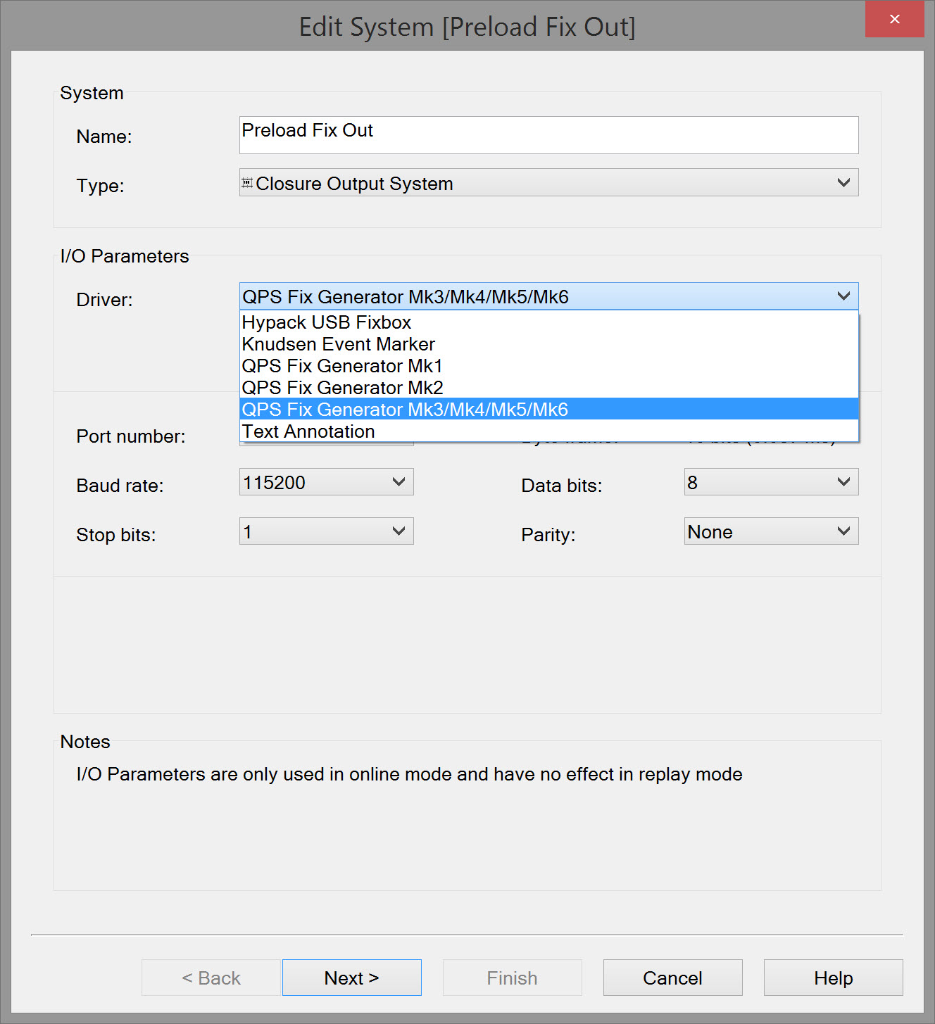 For System Type choose 'Closure Output System'. Make sure you select the appropriate Driver (MK 6 in the example).