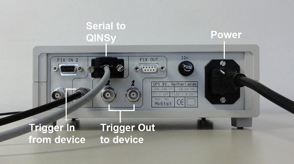 Please refer to QPS Fix Generator Boxes for a description of the particular Trigger Device model in use and the required cabling for different configurations.