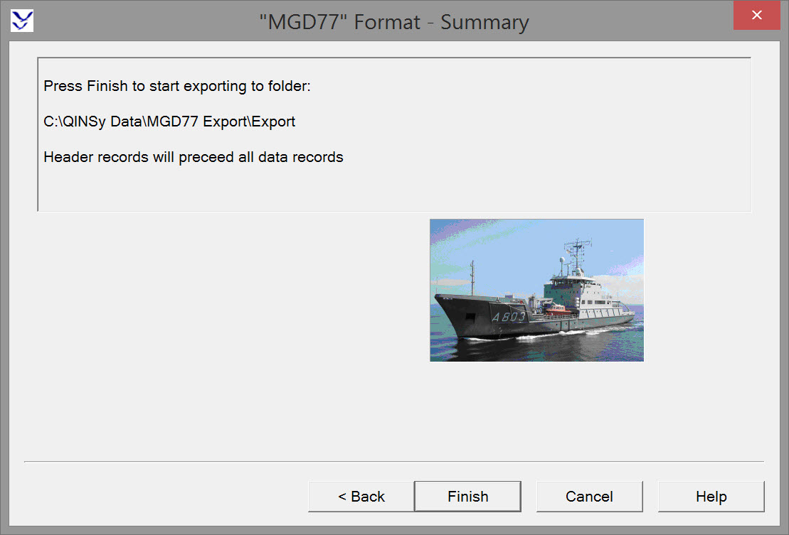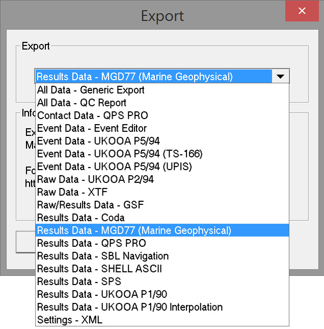 Select 'Results Data - MGD77 (Marine Geophysical)' and click OK to open the export wizard.