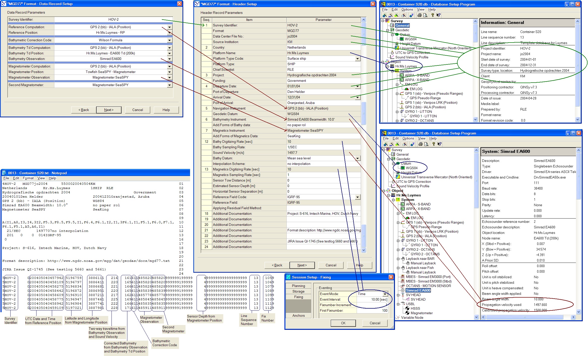 | 3 | Project: | Read from the Survey Type/Location entered in DbSetup - General - Project Information. |