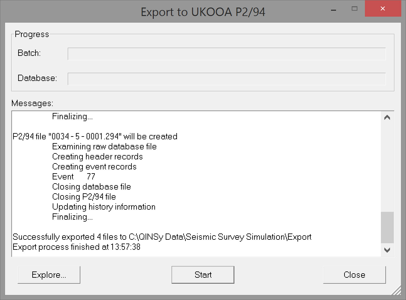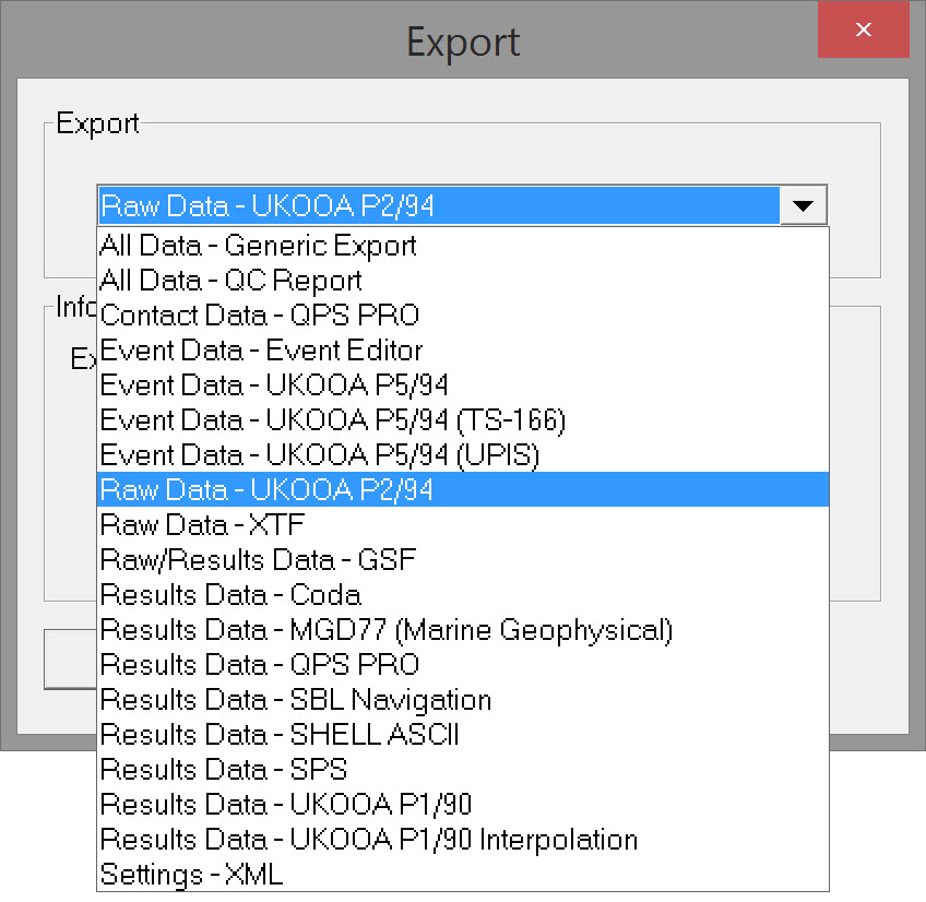 Select 'Raw Data - UKOOA P2/94' and click OK to open the export dialog - Export to UKOOA P2/94.
