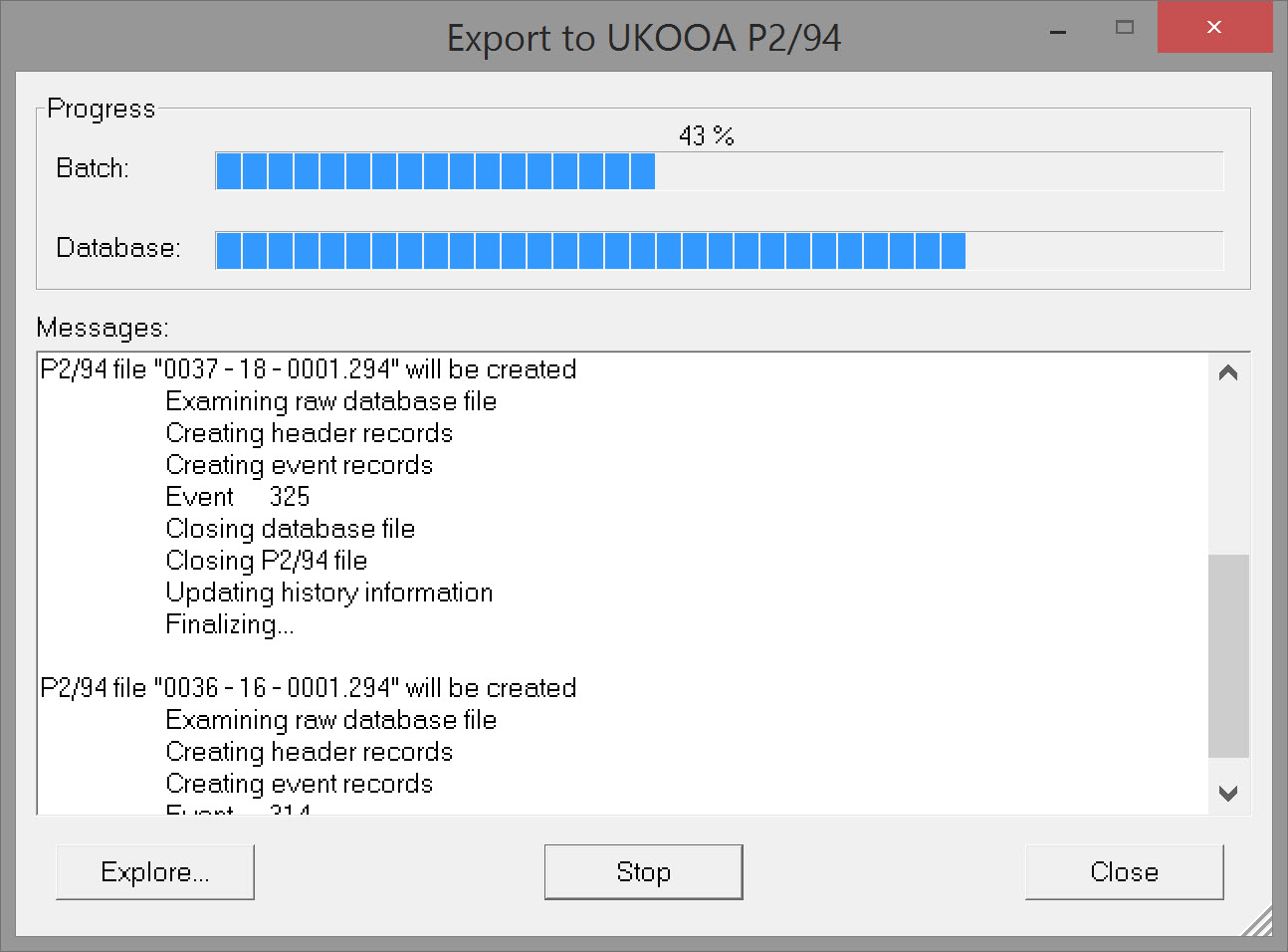 *.294 files are stored in the \ProjectFolder\Export folder. If one or more *.294 files already exist, a message pops up asking if they should be overwritten.