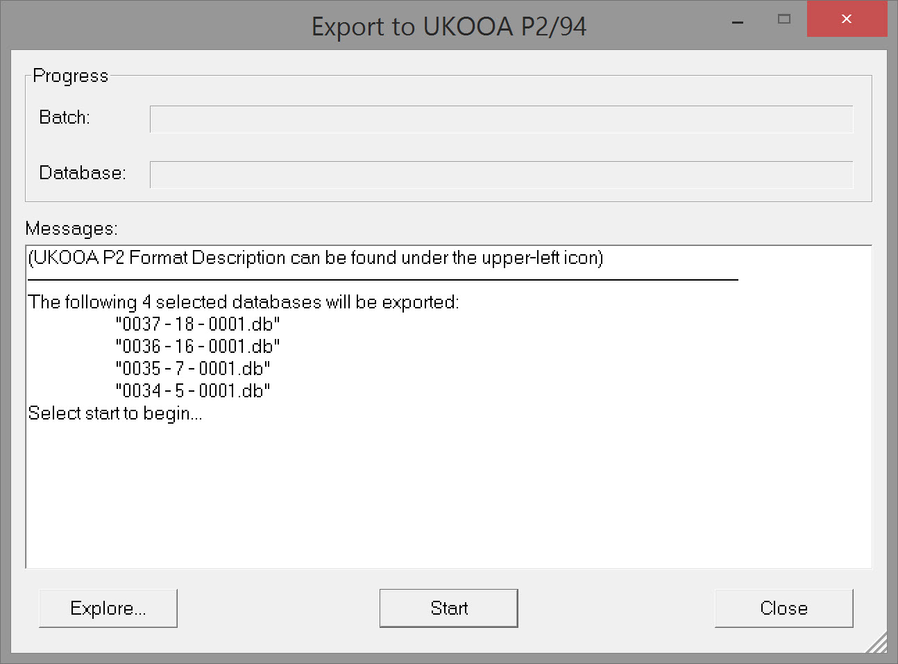 If multiple *.DB files were selected, they are listed in this dialog: