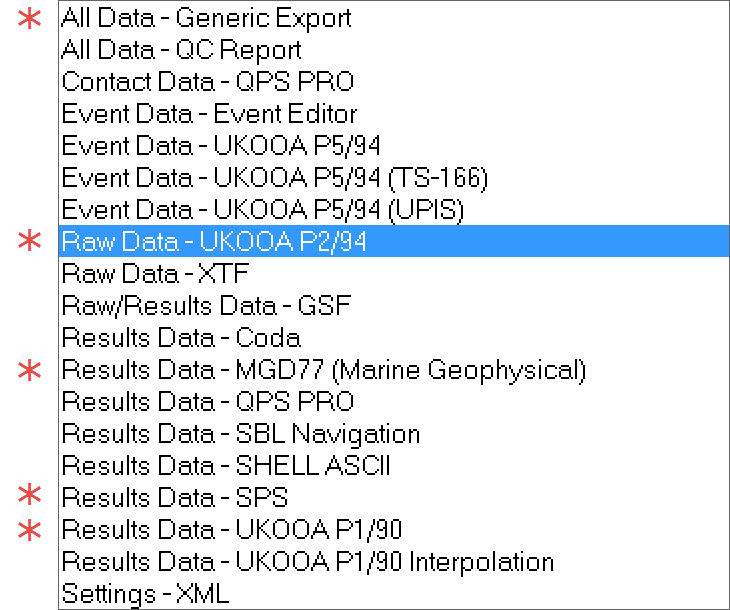 Event data – UKOOA P5/94 | Export event data in UKOOA P5/94 format, which is a data exchange format for Pipeline Positioning Data. |