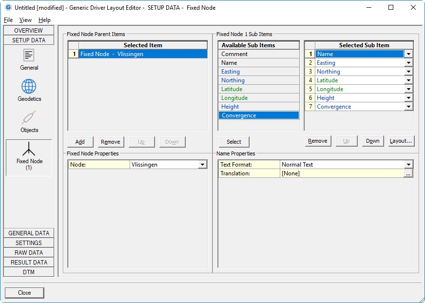 | Easting | Easting of the fixed node location, from the position as defined in Db Setup. Always on Survey Datum. If you only define geographical co-ordinates in Db Setup, the projection grid co-ordinates will be calculated automatically. | double | |||