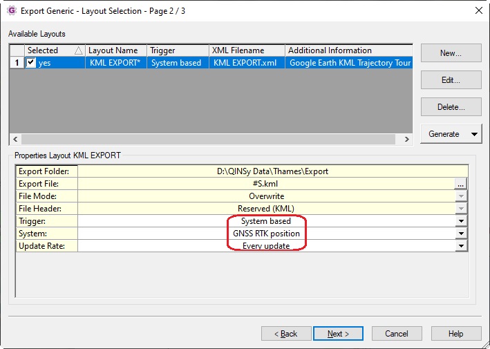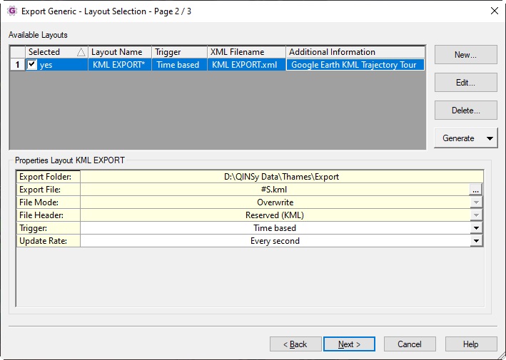 The Export Generic routine will create a so-called KML file from a recorded Qinsy database, containing either: