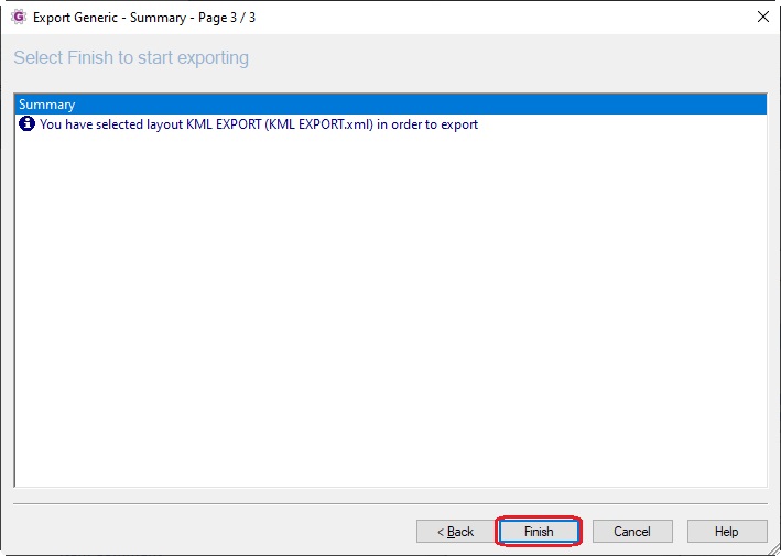On the last wizard page, select Finish in order to start exporting all trajectory data to the KML file.