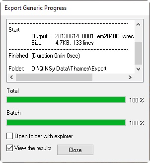 When the export is ready, close the progress information dialog, but make sure that 'View the results' is enabled.