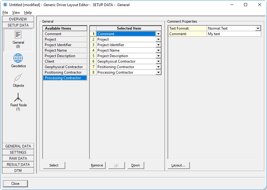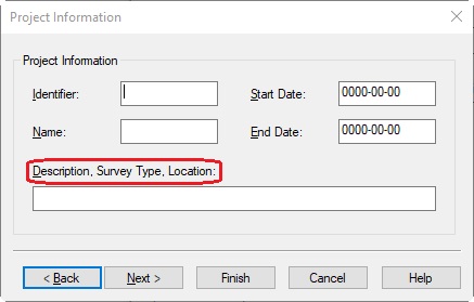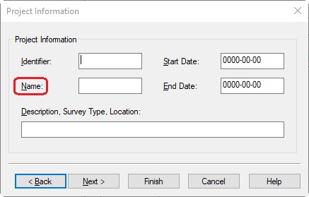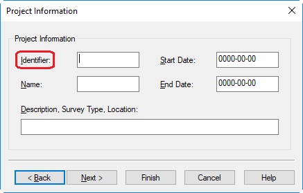 Project Identifier | As entered in Db Setup, Edit menu, General Information, Project Information | text | |||