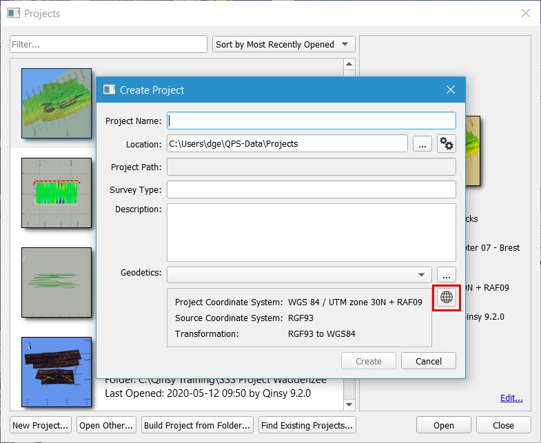 When a new project is created, Qinsy will fill in the last used Geodetics by default;