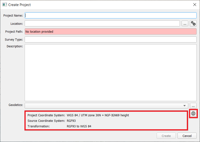 It is possible to define the geodetic settings in case a new Project is created for both Qimera and Qinsy. Alternatively, it can be edited from the Qinsy Console (if using Qinsy). In Qimera, this is only done during the project creation stage.