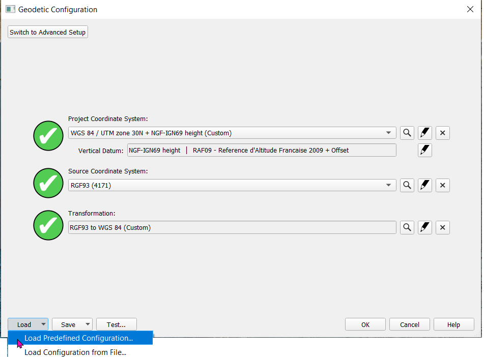 2. Selecting a Predefined Geodetic Configuration