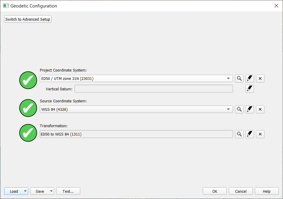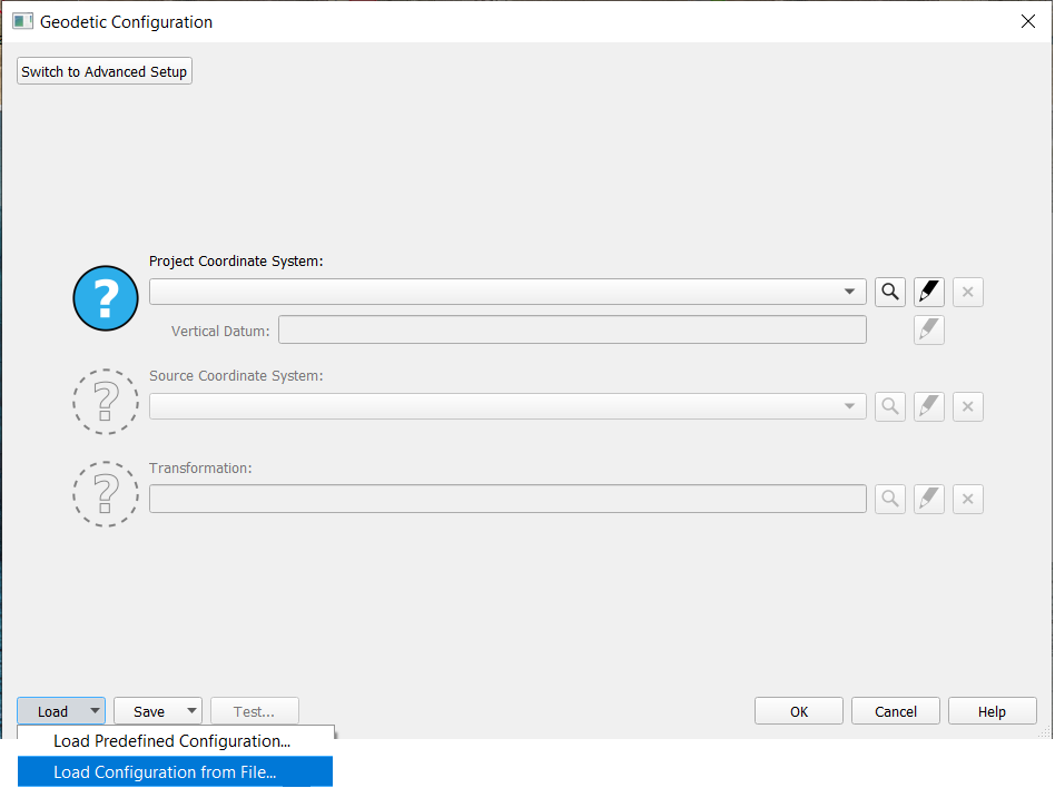 Selecting a Predefined Geodetic Setup