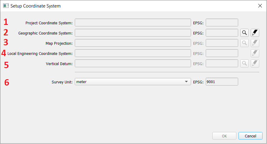 When the Guided Setup is used, the user needs to define at least the Project Coordinate System (1)