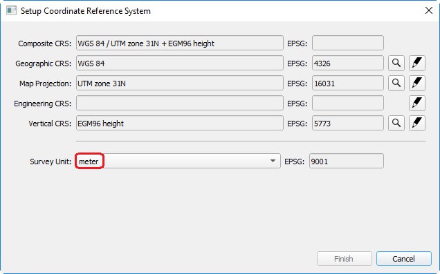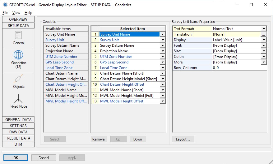 Survey Unit Name | Name of the selected survey unit, as seen in the Setup Coordinate Reference System. | text |